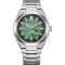 This stylish watch exudes Japanese aesthetics with its minimalist design and clean lines. The green dial is great to look at with luminous indexes, while the mechanical movement with transparent case bottom lets the technology speak for itself. The watch features a sturdy folding clasp, keeping it securely on the wrist.