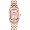The soft pink dial gives an elegant glow that contrasts beautifully with the warm rose gold. The oval case keeps the lines graceful and timeless, while the fixed bezel gives the design a sleek profile. This model mixes effortlessly with rose gold jewellery or a minimalist outfit.