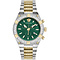 With a case diameter of 46 mm, this watch is anything but modest. The silver-coloured stainless steel case and strap give the watch a tough, luxurious look, while the deep green dial adds a fresh and unique touch. The subtle Greca details around the bezel and on the dial emphasise the signature Versace style.