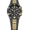 With a case diameter of 46 mm, this watch is anything but modest. The black stainless steel case and two-tone strap give the watch an extra rugged, luxurious look, whilst the gold-coloured elements on the black dial stand out beautifully. The subtle Greca details around the bezel and on the dial emphasise the distinctive Versace Greca style.